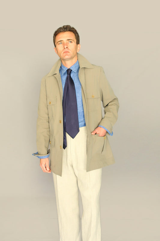 CHAQUETA SAHARIANA VERDE - ALGODÓN