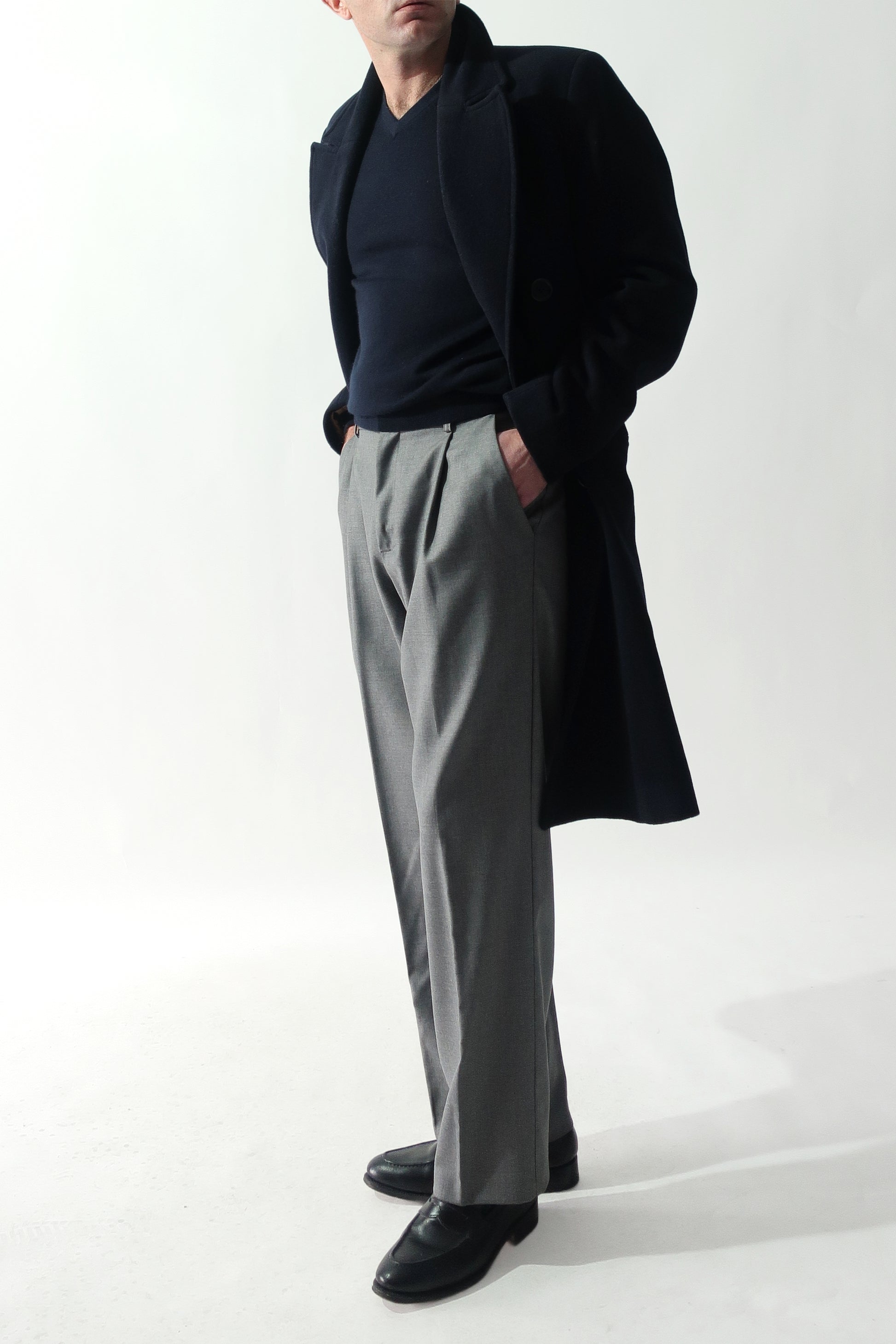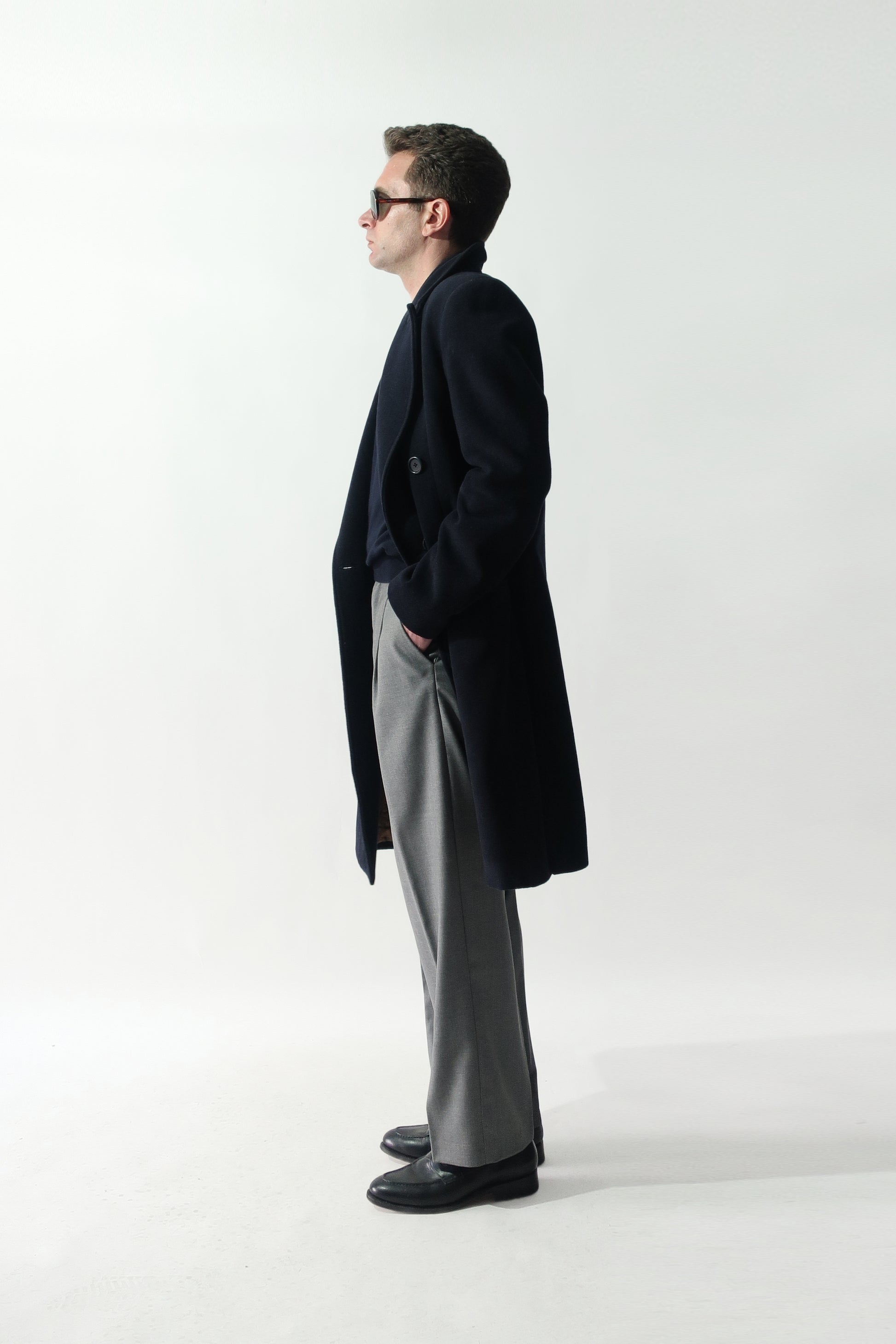 ABRIGO LARGO AZUL CASHMERE Y LANA