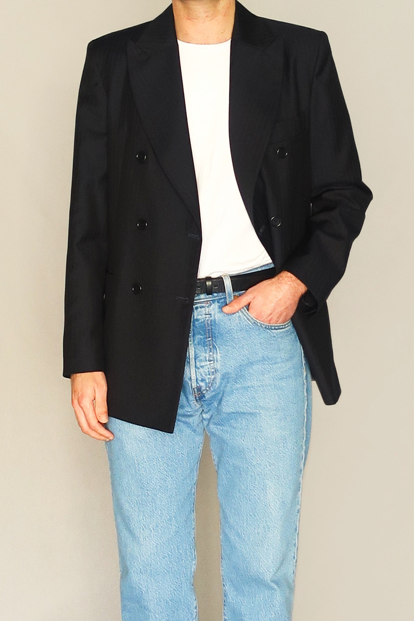 AMERICANA CRUZADA LANA - AZUL NOCHE ESPIGA