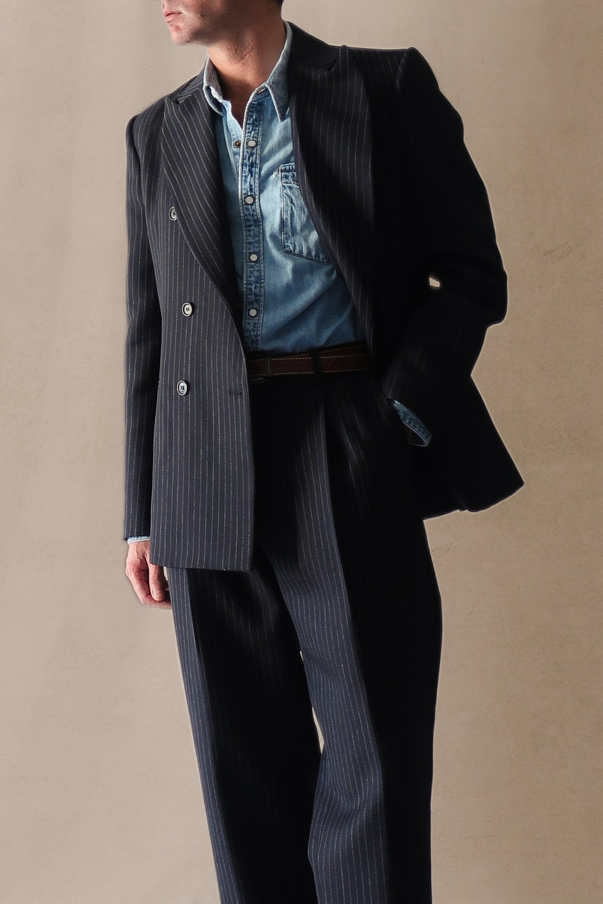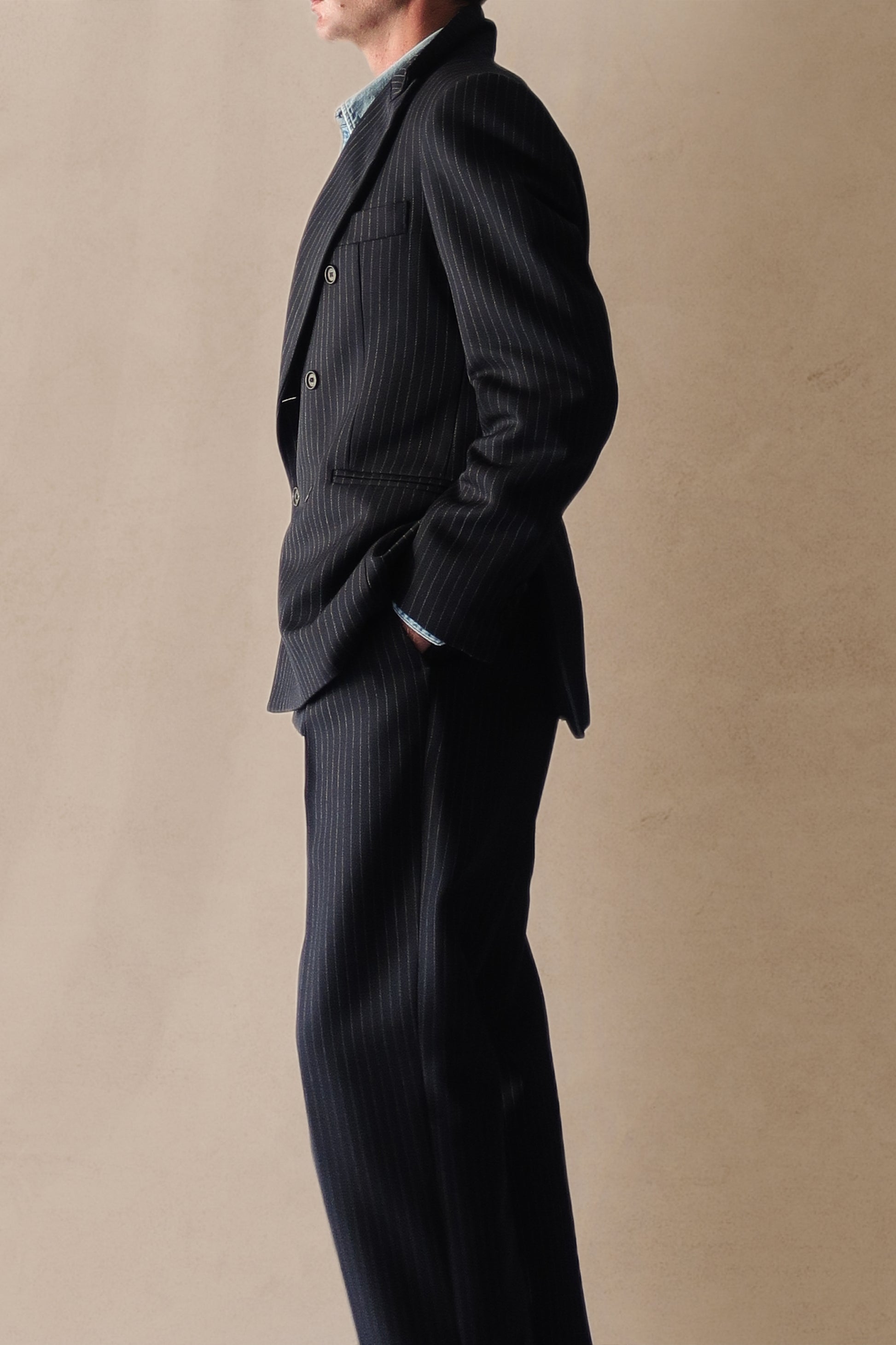Americana cruzada de 6 botones en lana. Corte clásico recto, ligeramente entallado, con suaves hombreras y completamente forrada.
