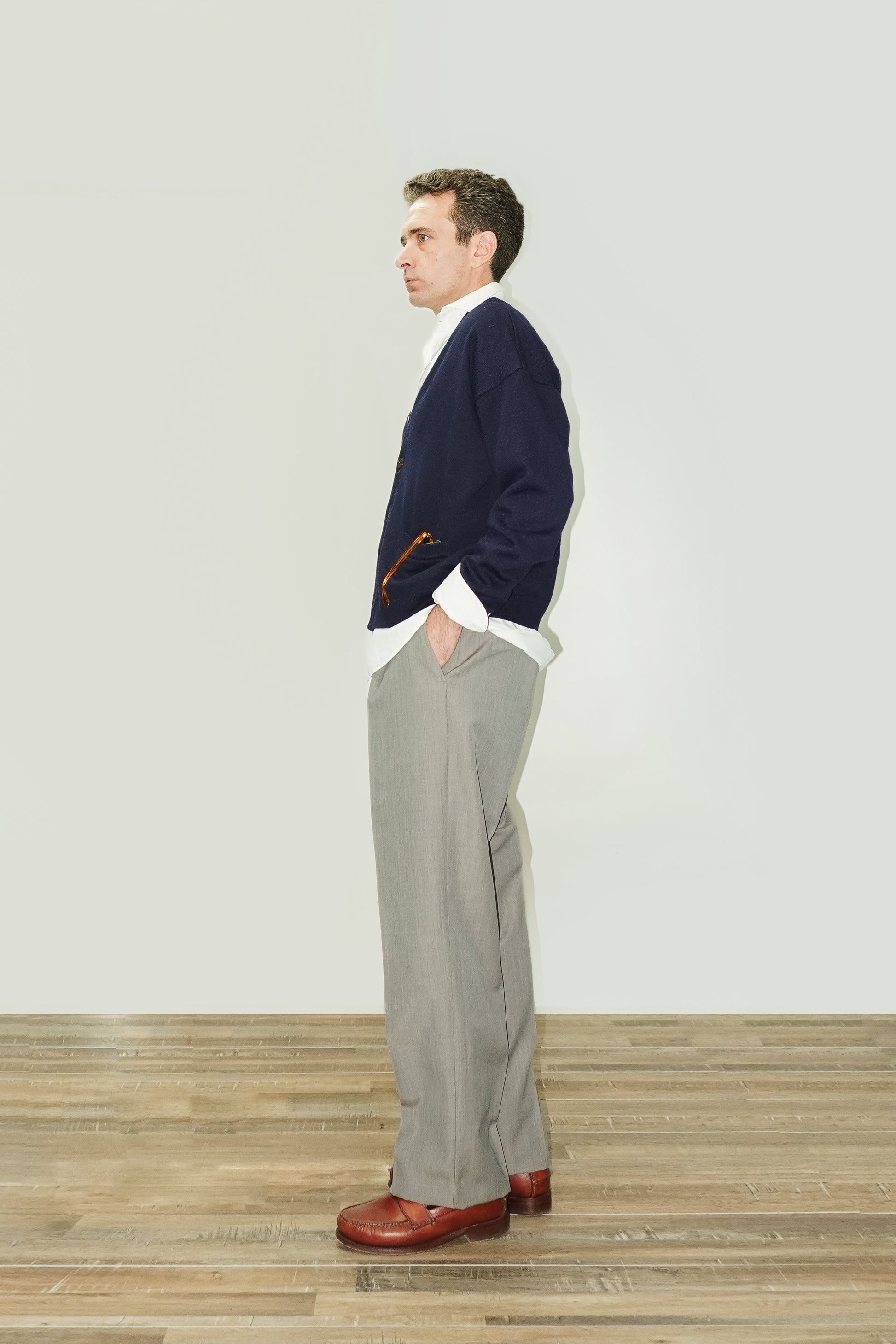 Corte recto con pinzas, 1 bolsillo trasero en vivo, 6 puentes para cinturón, 2 botones y cremallera, 23,5 cm abertura de pierna, bajo semiacabado.